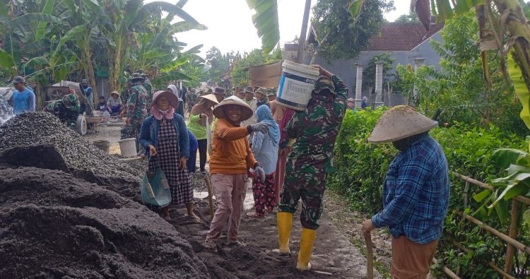 GROBOGAN - Semangat kebersamaan antara TNI dan rakyat kembali terlihat di lokasi TNI Manunggal Membangun Desa (TMMD) Reguler ke-126 Kodim 0717/Grobogan yang digelar di Desa Karangharjo, Kecamatan Pulokulon, Kabupaten Grobogan. Minggu (26/10/2025), personel Satgas TMMD bersama warga setempat tampak kompak dan tak kenal lelah melangsir batu koral serta pasir secara manual untuk mempercepat proses pengecoran jalan rabat beton.