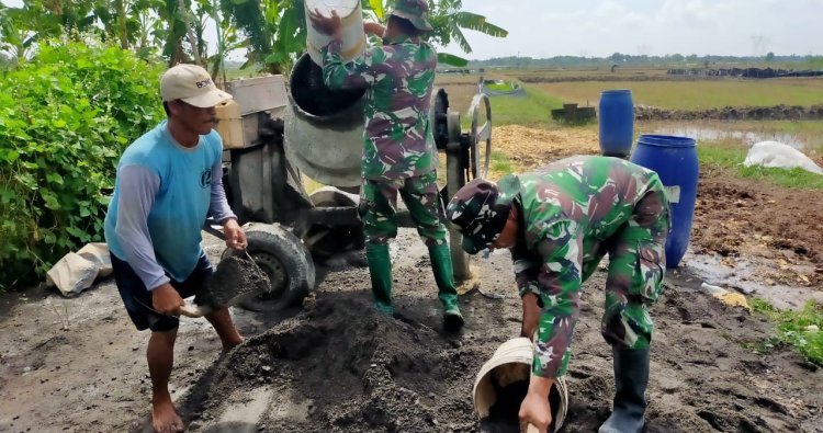 Pekerjaan pengecoran jalan dan pembuatan talud terus dikebut. Dalam kegiatan itu, tampak personel Satgas TMMD bekerja tanpa mengenal lelah bersama warga setempat. Kebersamaan mereka bukan sekadar rutinitas kerja, melainkan wujud kemanunggalan TNI dengan rakyat yang menjadi semangat utama TMMD.